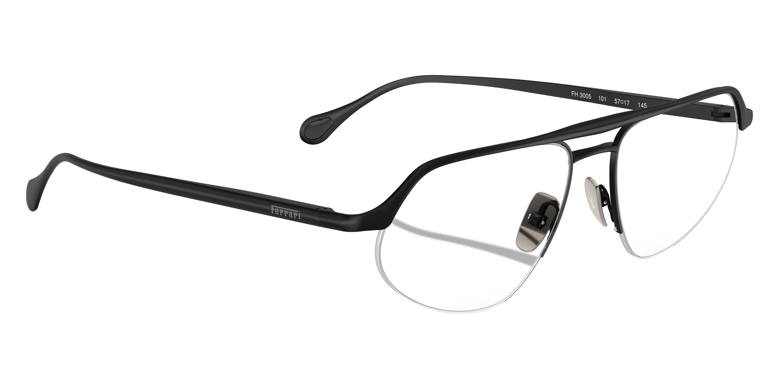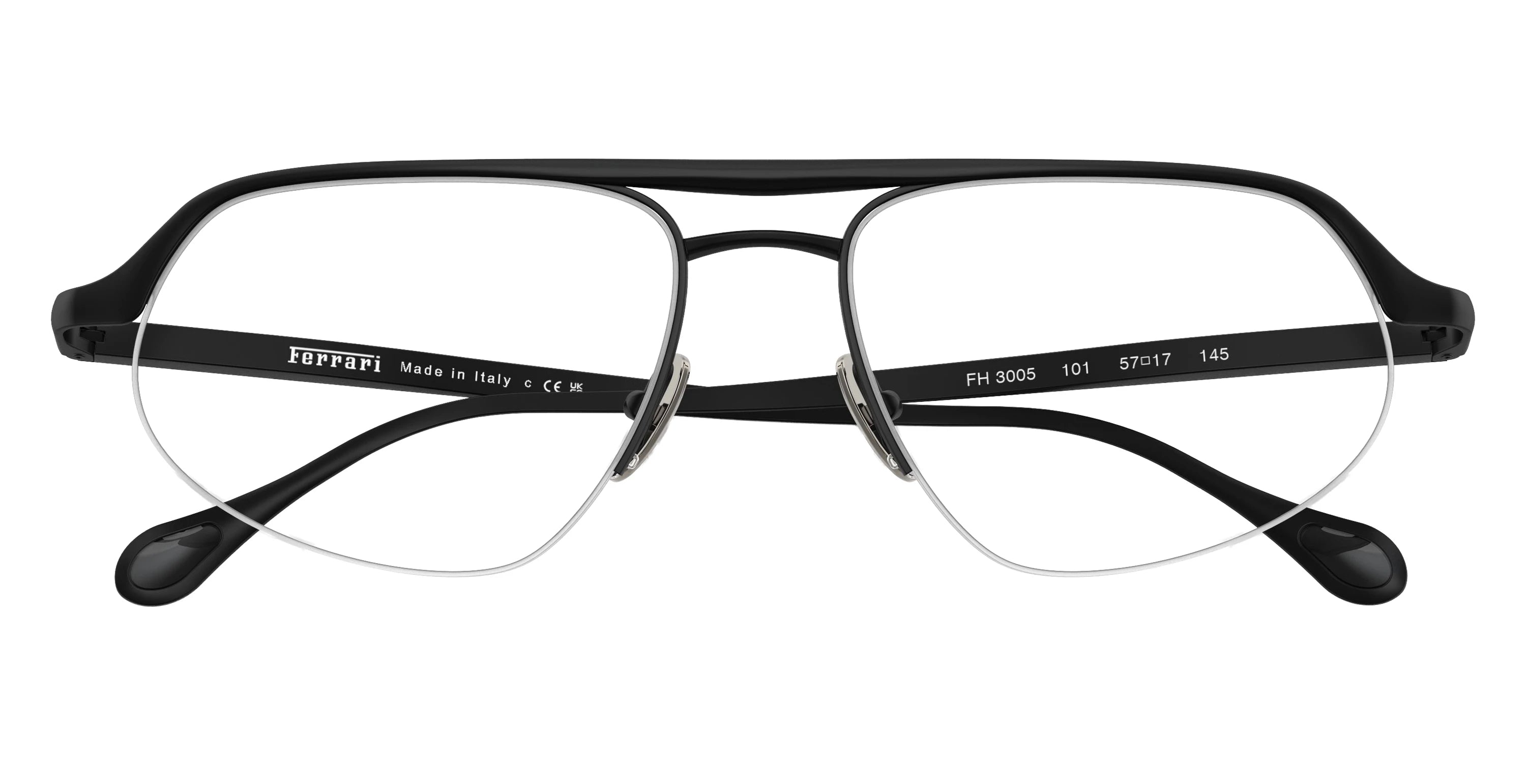 FH3005 Eyeglasses by FERRARI™. The irregular shape design feature a semi rimless metal frame. This model is available in eight different color combinations and sizes. FERRARI eyewear embodies the spirit of speed and precision synonymous with the iconic racing team. Each frame reflects the brand’s commitment to high performance, combining sleek designs with cutting-edge materials for both style and durability. Inspired by the legendary FERRARI cars, the brand's collection showcases bold lines and vibrant colors, often incorporating the signature red that fans recognize instantly. Each frame pays homage to FERRARI’s rich history, with subtle nods to classic racing motifs that resonate with fans and collectors alike. Capturing the essence of Italian craftsmanship in every piece, FERRARI eyewear ensures a perfect fit for any face type. Advanced lens technology enhances visual clarity, making them ideal for both everyday wear and high-speed adventures. The use of top-quality metal keeps the frames sleek and robust, while the silky texture of acetate lends an extra layer of luxury to the finish. Designed for those who appreciate luxury and performance, FERRARI eyewear elevates any outfit, adding a touch of racing heritage. With each pair, you are invited to embrace the thrill of the track while enjoying the elegance of sophisticated eyewear.