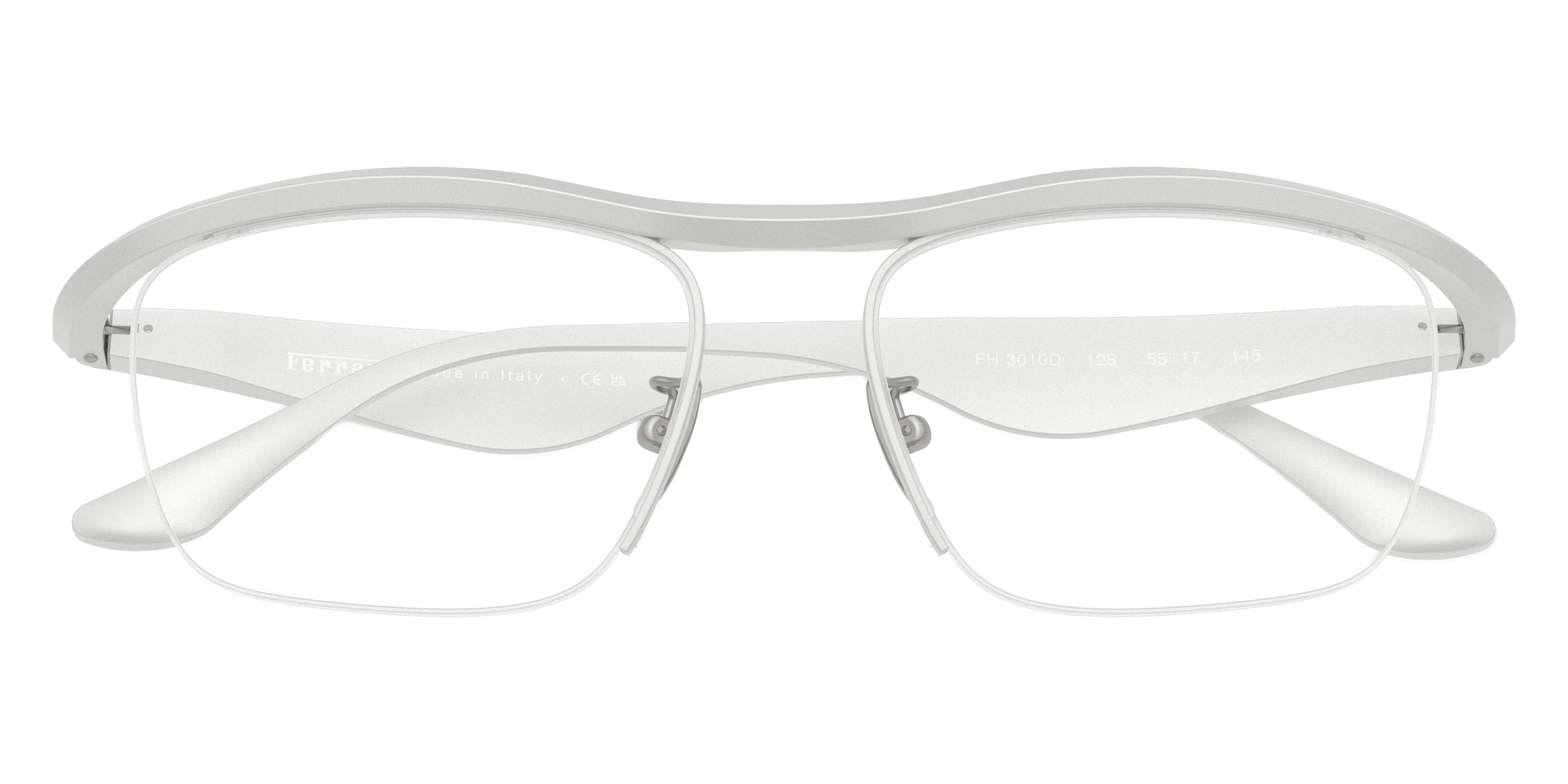 Matte Silver (128) Eyeglasses (FH3010D 128 53) by FERRARI™. Size: 53-17-145, Shape: Square, Material: Metal.