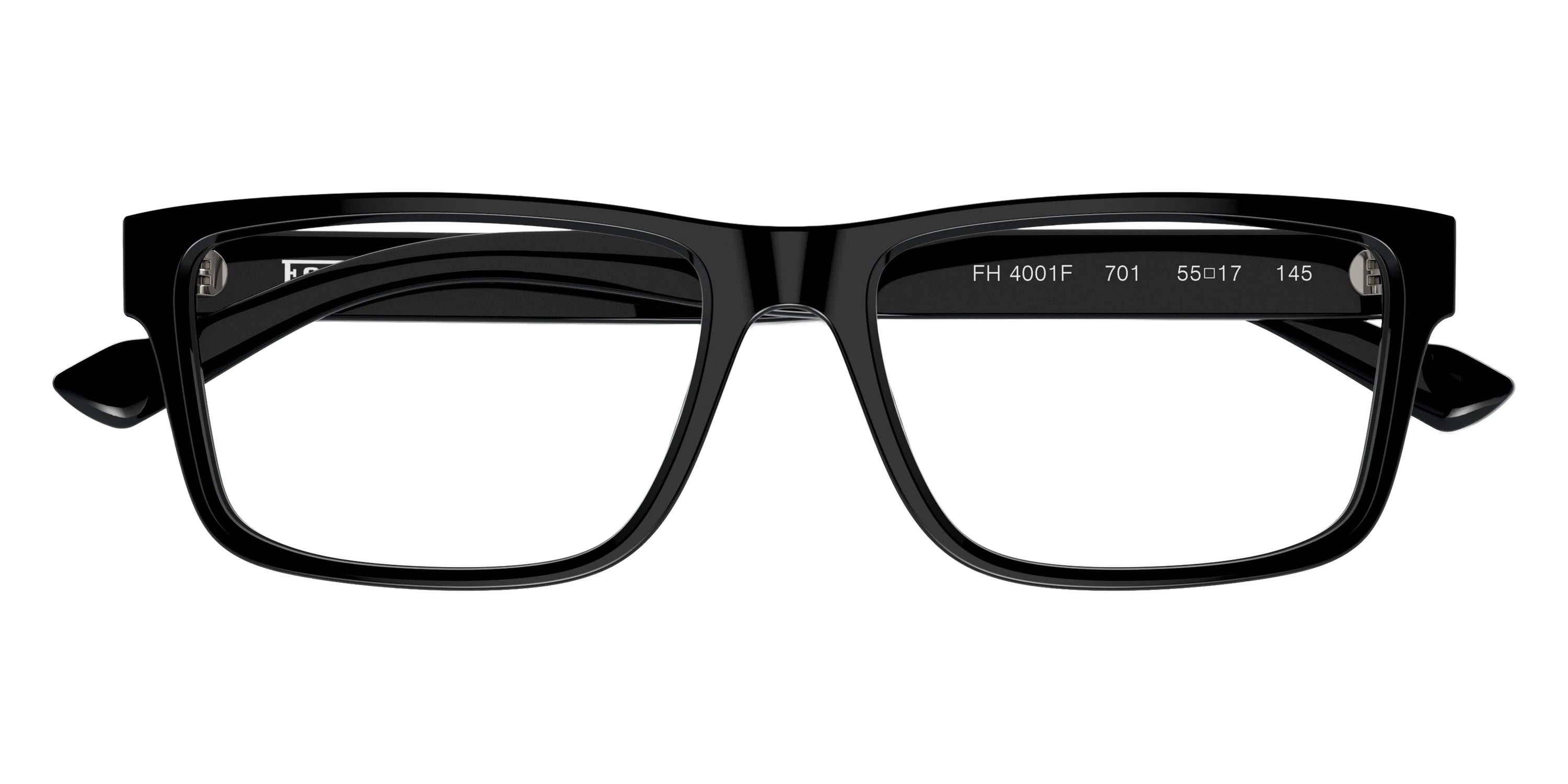 Black (701) Eyeglasses (FH4001F 701 55) by FERRARI™. Size: 55-17-145, Shape: Rectangle, Material: Acetate.