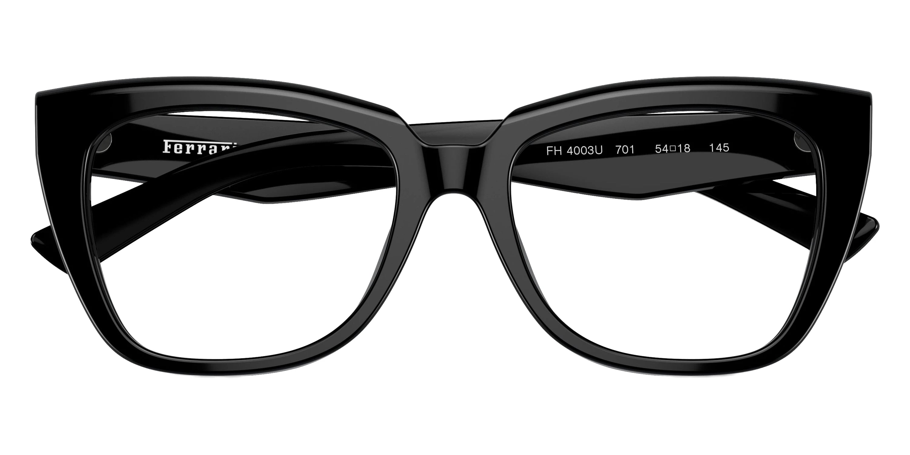 FH4003U Eyeglasses by FERRARI™. The square shape design feature a full rim acetate frame. This model is available in eight different color combinations and sizes. FERRARI eyewear embodies the spirit of speed and precision synonymous with the iconic racing team. Each frame reflects the brand’s commitment to high performance, combining sleek designs with cutting-edge materials for both style and durability. Inspired by the legendary FERRARI cars, the brand's collection showcases bold lines and vibrant colors, often incorporating the signature red that fans recognize instantly. Each frame pays homage to FERRARI’s rich history, with subtle nods to classic racing motifs that resonate with fans and collectors alike. Capturing the essence of Italian craftsmanship in every piece, FERRARI eyewear ensures a perfect fit for any face type. Advanced lens technology enhances visual clarity, making them ideal for both everyday wear and high-speed adventures. The use of top-quality metal keeps the frames sleek and robust, while the silky texture of acetate lends an extra layer of luxury to the finish. Designed for those who appreciate luxury and performance, FERRARI eyewear elevates any outfit, adding a touch of racing heritage. With each pair, you are invited to embrace the thrill of the track while enjoying the elegance of sophisticated eyewear.