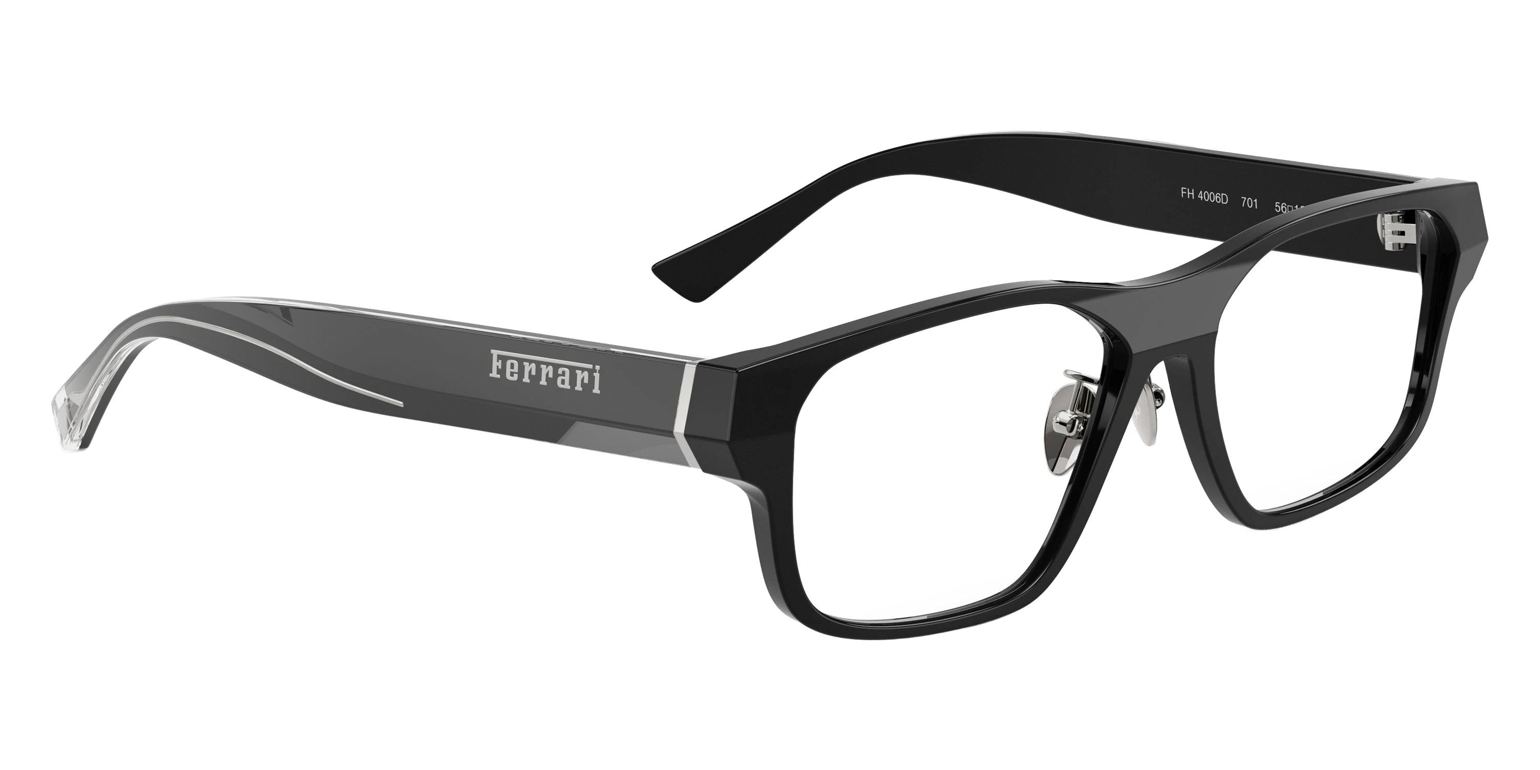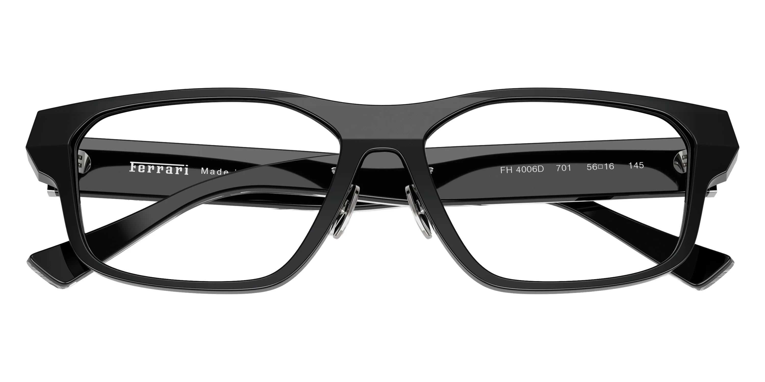 Black (701) Eyeglasses (FH4006D 701 54) by FERRARI™. Size: 54-16-145, Shape: Square, Material: Acetate.