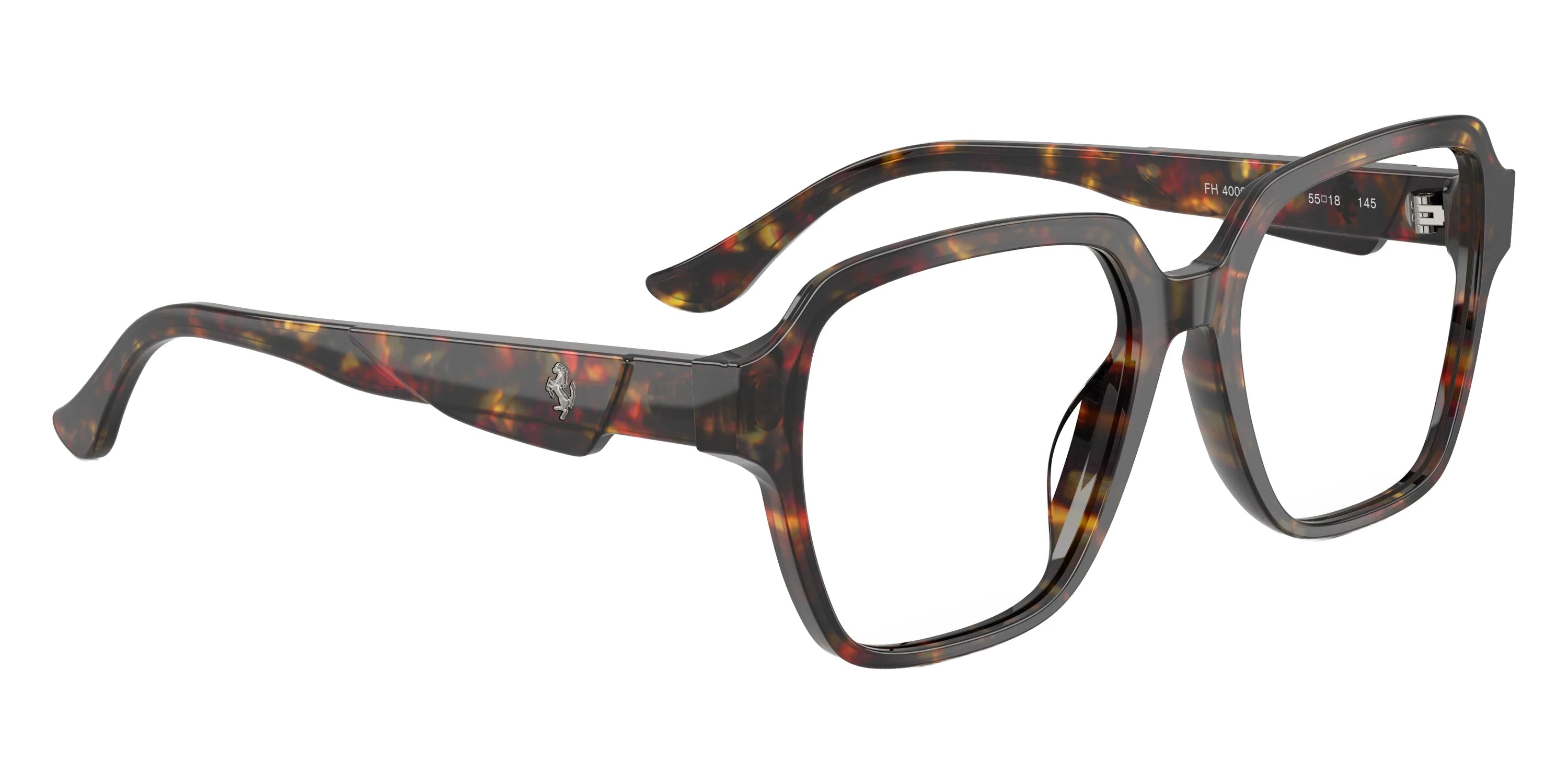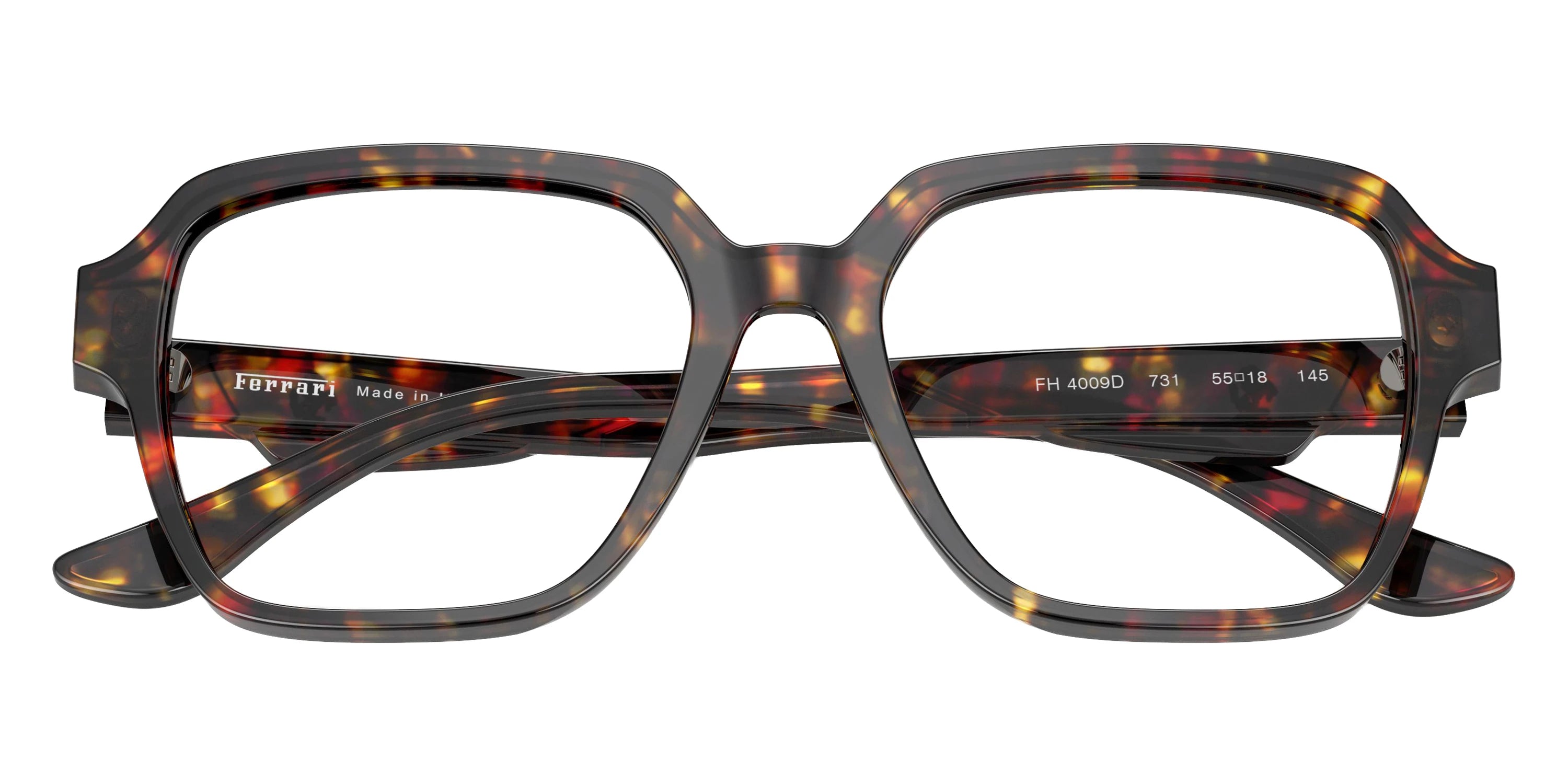 FH4009D Eyeglasses by FERRARI™. The square shape design feature a full rim acetate frame. This model is available in eight different color combinations and sizes. FERRARI eyewear embodies the spirit of speed and precision synonymous with the iconic racing team. Each frame reflects the brand’s commitment to high performance, combining sleek designs with cutting-edge materials for both style and durability. Inspired by the legendary FERRARI cars, the brand's collection showcases bold lines and vibrant colors, often incorporating the signature red that fans recognize instantly. Each frame pays homage to FERRARI’s rich history, with subtle nods to classic racing motifs that resonate with fans and collectors alike. Capturing the essence of Italian craftsmanship in every piece, FERRARI eyewear ensures a perfect fit for any face type. Advanced lens technology enhances visual clarity, making them ideal for both everyday wear and high-speed adventures. The use of top-quality metal keeps the frames sleek and robust, while the silky texture of acetate lends an extra layer of luxury to the finish. Designed for those who appreciate luxury and performance, FERRARI eyewear elevates any outfit, adding a touch of racing heritage. With each pair, you are invited to embrace the thrill of the track while enjoying the elegance of sophisticated eyewear.
