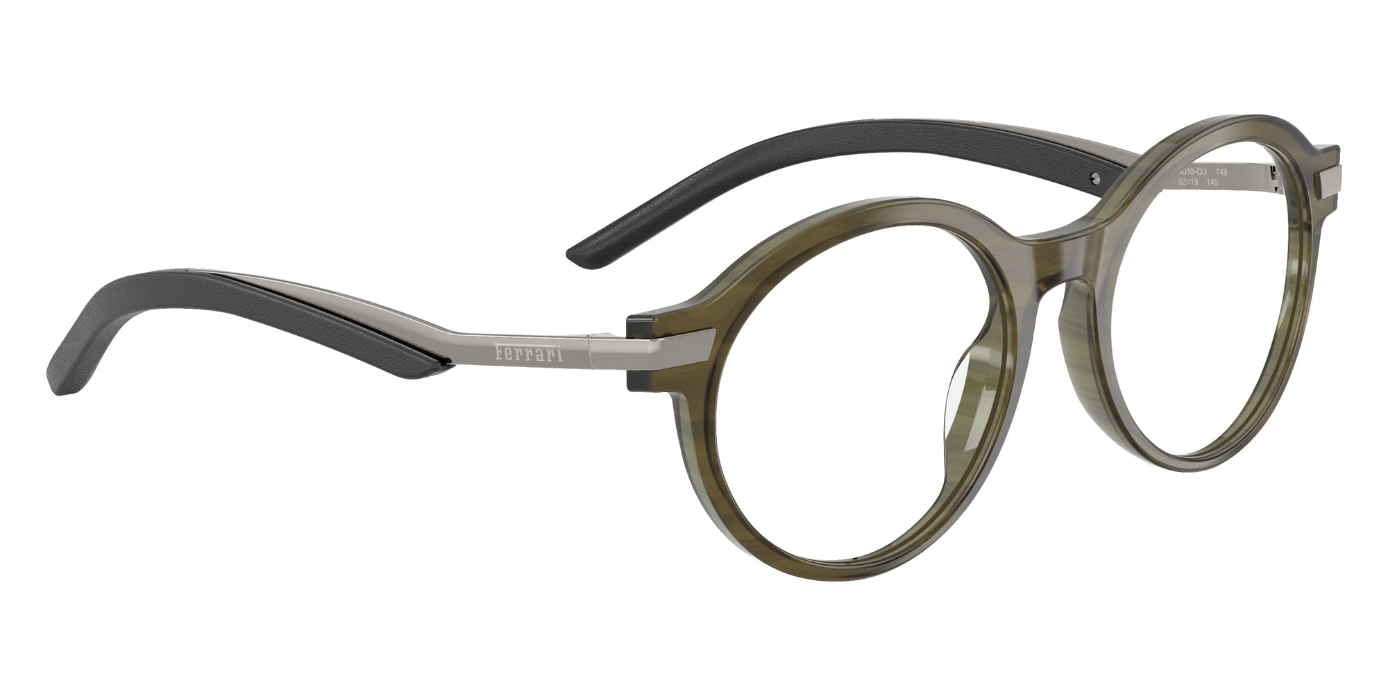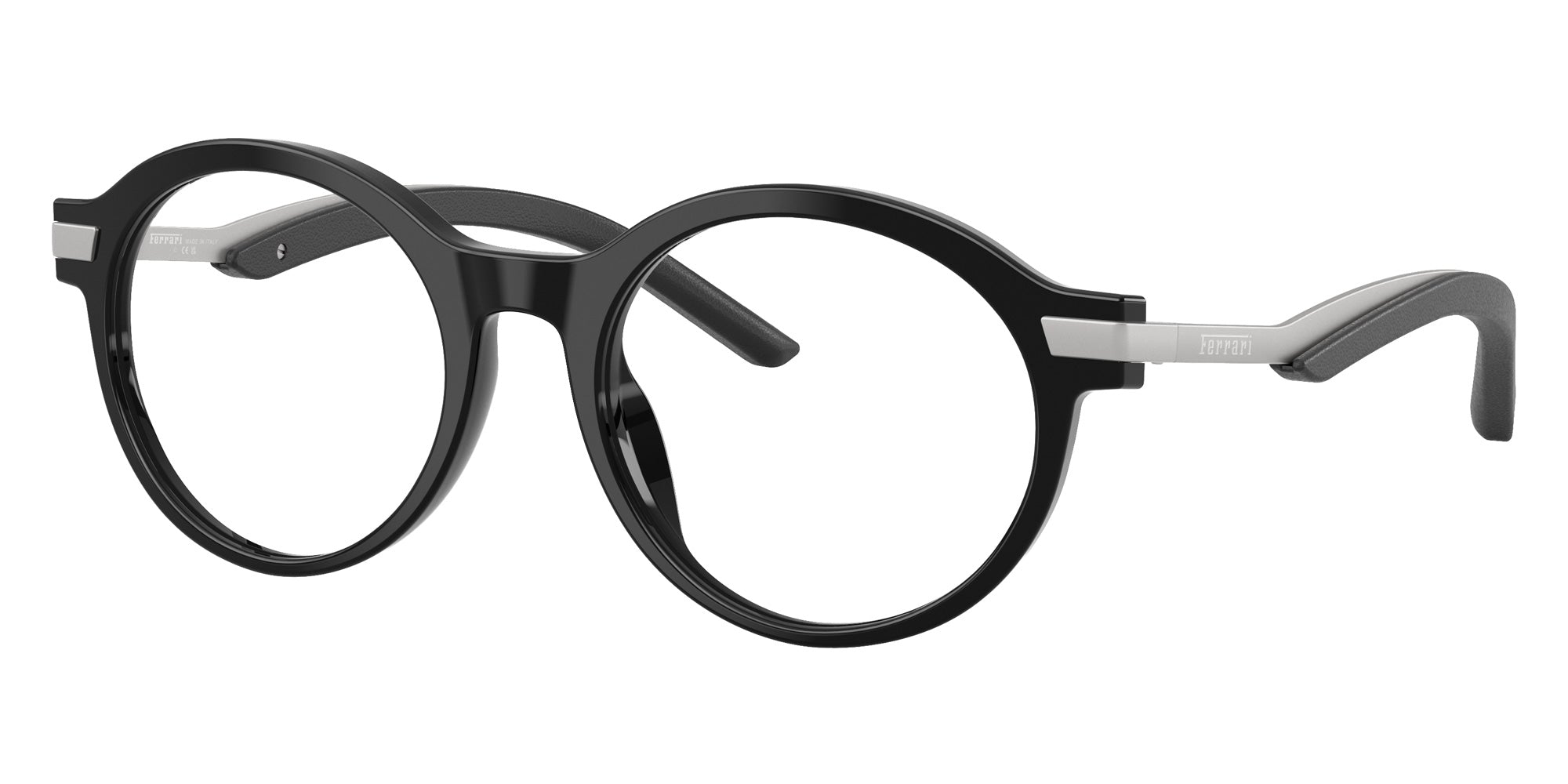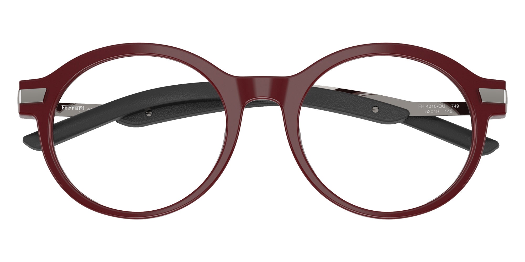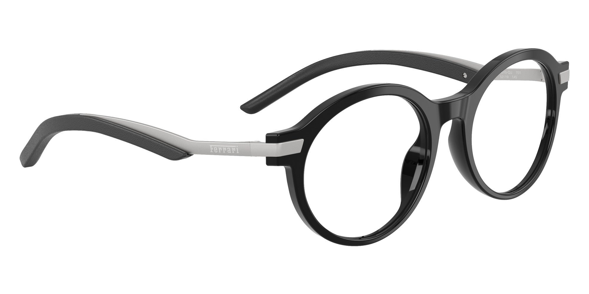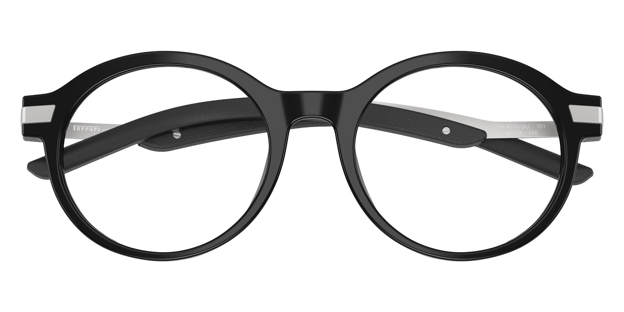 Shiny Black (701) Eyeglasses (FH4010QU 701 50) by FERRARI. Size: 50-19-145, Shape: Round, Material: Acetate and Metal.