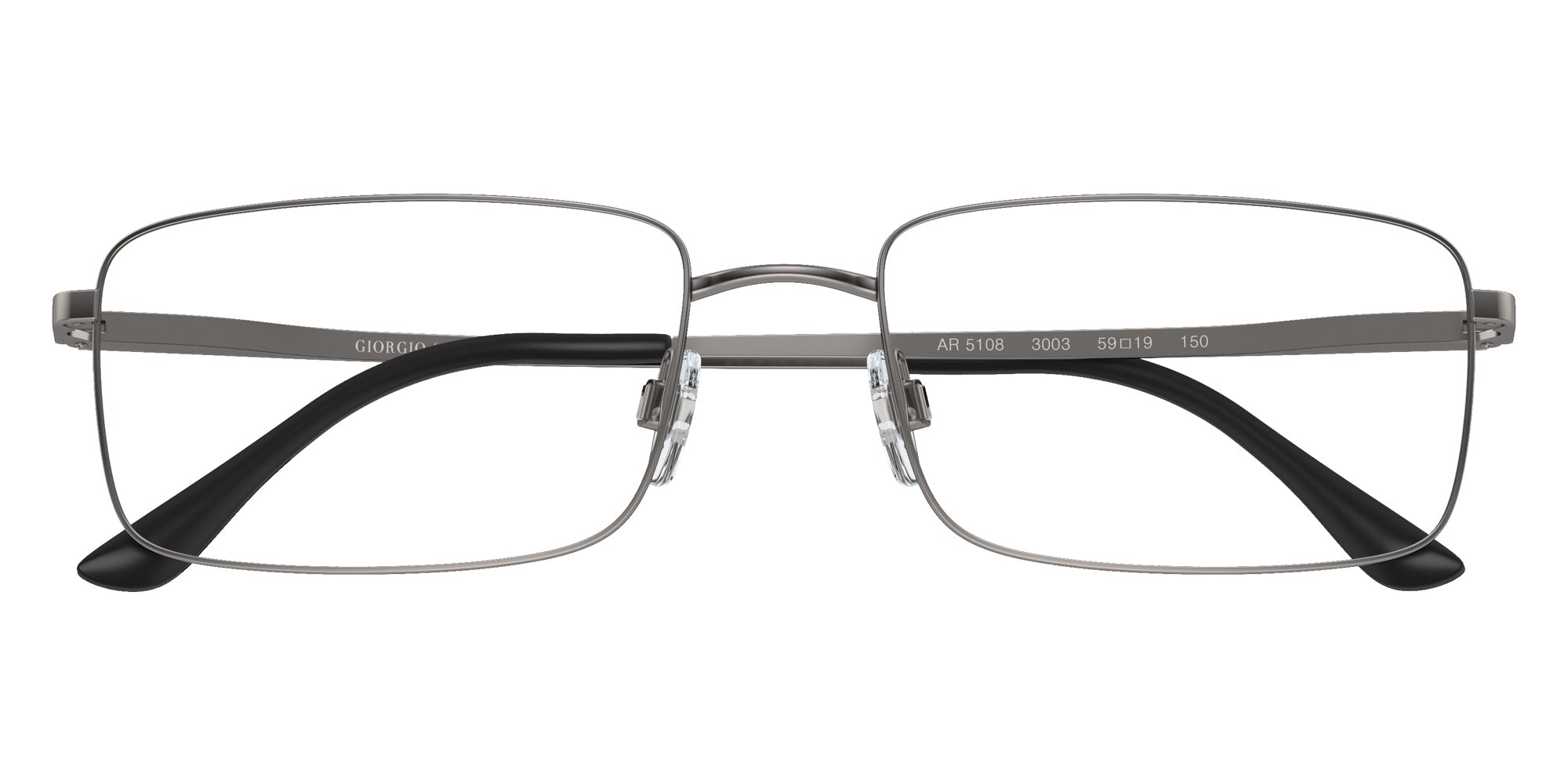 Matte Black (3001) Eyeglasses (AR5108 3001 59) by GIORGIO ARMANI. Size: 59-19-150, Shape: Rectangle, Material: Steel and Metal.