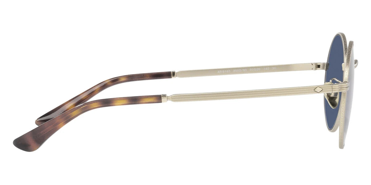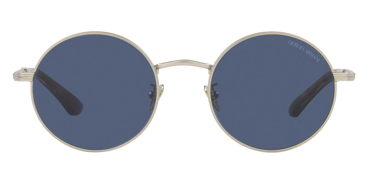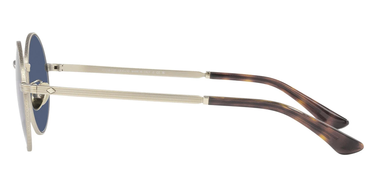 Matte Pale Gold (300280) Sunglasses with Dark Blue lenses (AR6140 300280 50) by GIORGIO ARMANI™. Size: 50-20-145, Shape: Round, Material: Metal.