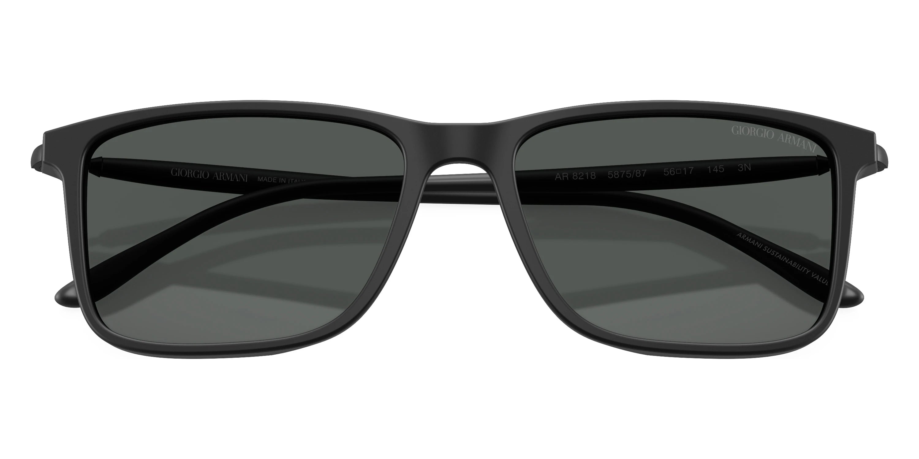 Black (50012A) Sunglasses with Green Exclusive lenses (AR8218 50012A 56) by GIORGIO ARMANI™. Size: 56-17-145, Shape: Rectangle, Material: Acetate and Metal.