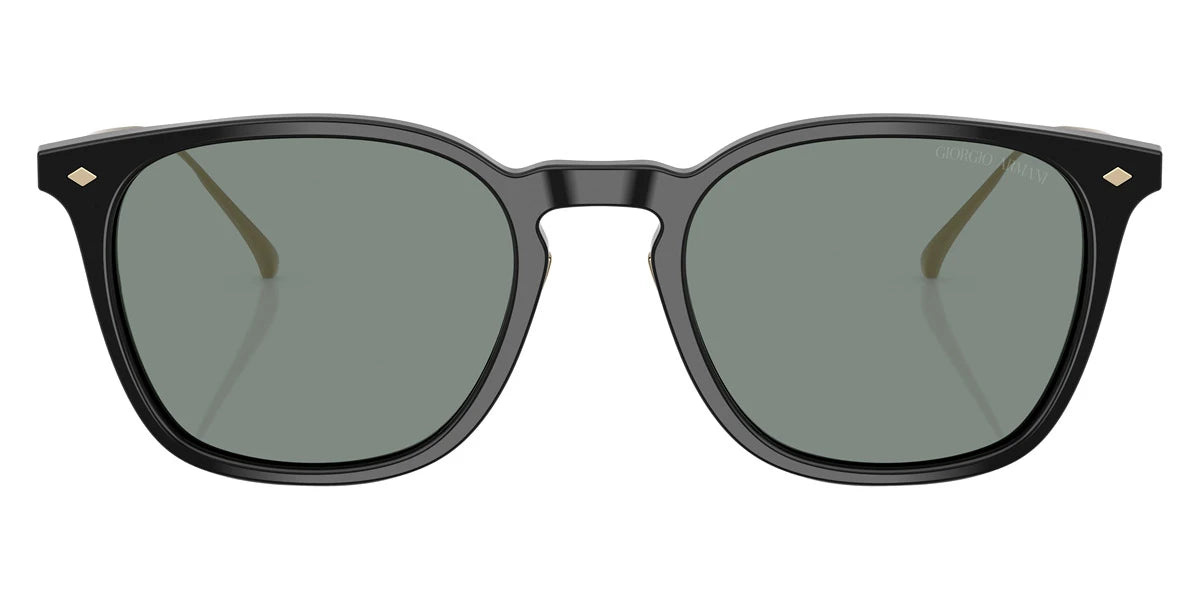 Black/Pale Gold (606011) Sunglasses with Gray lenses (AR8226T 606011 52) by GIORGIO ARMANI™. Size: 52-20-145, Shape: Square, Material: Acetate and Titanium.