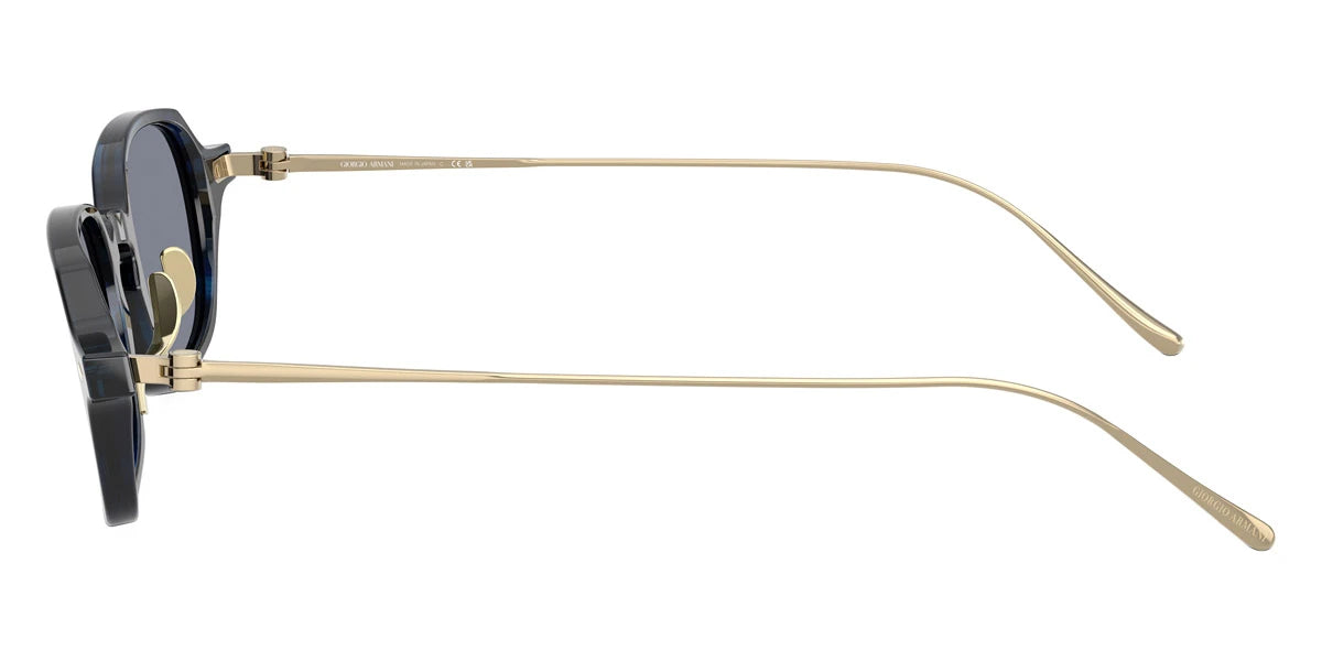 Striped Blue/Pale Gold (620919) Sunglasses with Blue lenses (AR8227T 620919 46) by GIORGIO ARMANI™. Size: 46-23-145, Shape: Rectangle, Material: Acetate and Titanium.