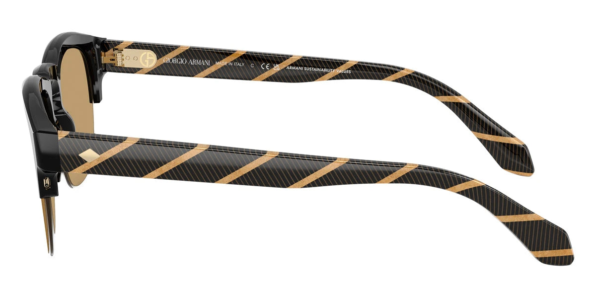 Black/Thin Striped Gold (587573) Sunglasses with Brown lenses (AR8238F 587573 53) by GIORGIO ARMANI™. Size: 53-22-145, Shape: Wayfarer, Material: Acetate.