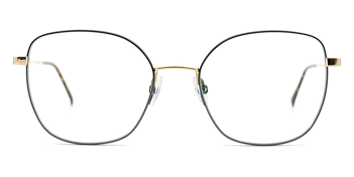 Gold Shiny/Moss Green (GLS-GR) Eyeglasses (ANDARA GLS-GR 53) by Götti™. Size: 53-18, Shape: Cat-Eye, Material: Titanium.