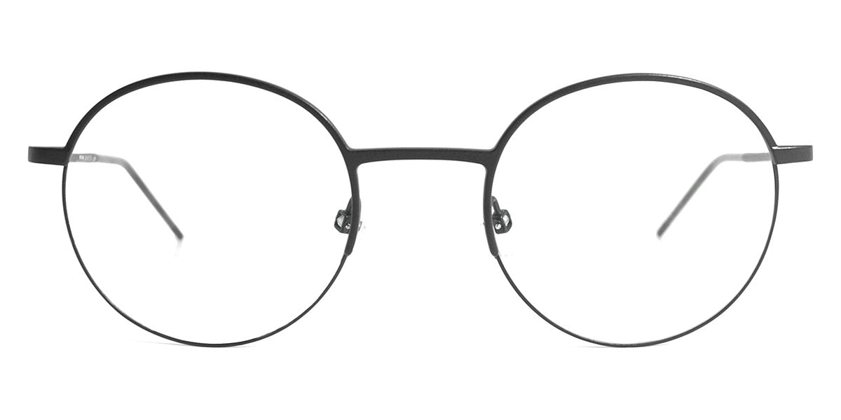 Black Matte (BLKM) Eyeglasses (Quentin BLKM 49) by Götti™. Size: 49-21-140, Shape: Round, Material: Titanium.