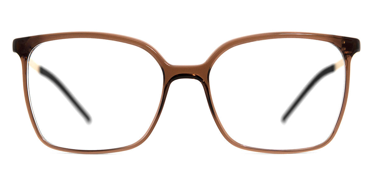 Dark Transparent Brown/Gold (DTB-G) Eyeglasses (Roberts DTB-G 52) by Götti™. Size: 52-15-138, Shape: Square, Material: Acetate and Stainless Steel.