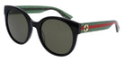 Black/Green (002) Sunglasses with Green lenses (GG0035SN 002 54) by Gucci™. Size: 54-22-140, Shape: Round, Material: Acetate.