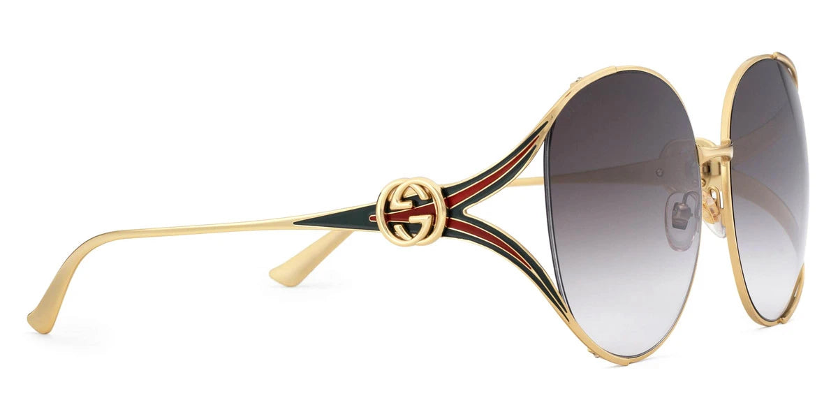 Gold (001) Sunglasses with Gray Gradient lenses (GG0225S 001 63) by Gucci™. Size: 63-17-130, Shape: Oval, Material: Metal.