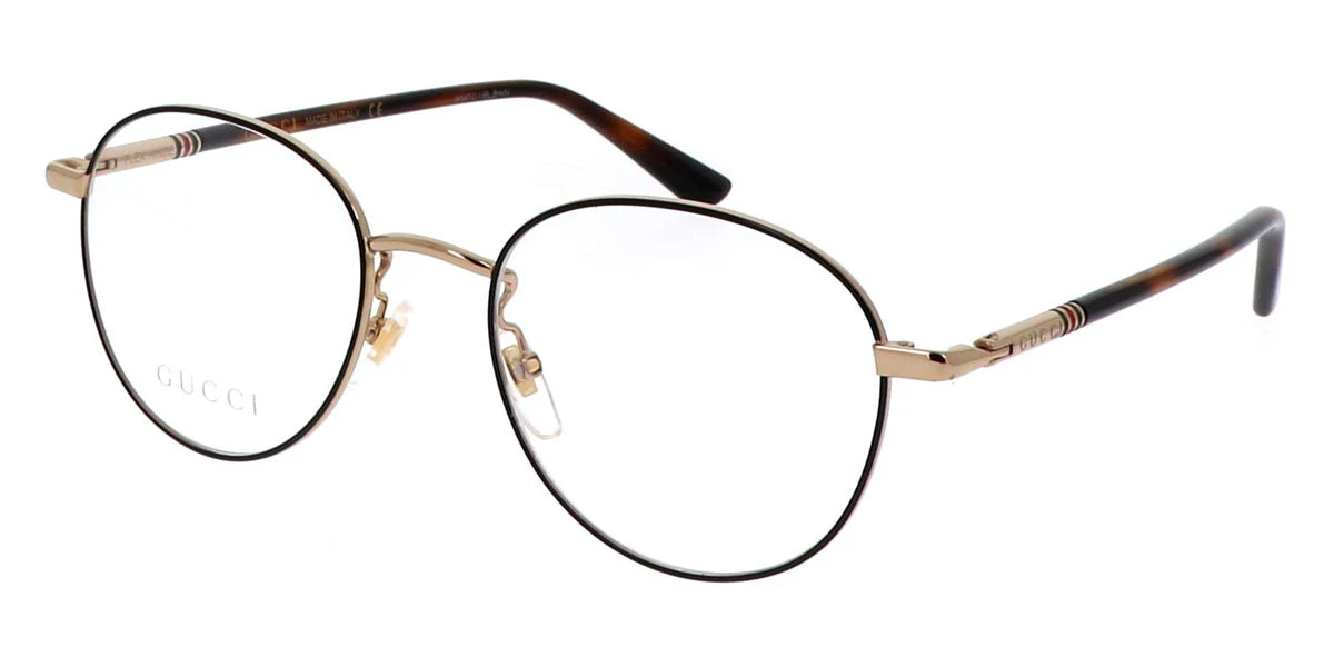Black/Havana (002) Eyeglasses (GG0392O 002 51) by Gucci™. Size: 51-19-140, Shape: Round, Material: Metal.