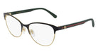 Black/Green (004) Eyeglasses (GG0718O 004 53) by Gucci™. Size: 53-17-140, Shape: Cat-Eye, Material: Metal.