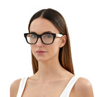 Black/White (002) Eyeglasses (GG0999O 002 52) by Gucci™. Size: 52-17-145, Shape: Cat-Eye, Material: Acetate.