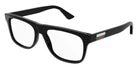 GG1117O Eyeglasses by Gucci™. The rectangle shape design feature a full rim injection frame. This model is available in three different color combinations and sizes. Gucci is a luxury Italian brand that started as a luggage manufacturer, but over time, it developed and grew up into a great fashion house that offers outstanding clothes, shoes, bags, textiles, cosmetics, fragrances, and accessories, including a stunning eyewear collection. Each pair of glasses evokes luxury and symbolizes uniqueness, combined with impeccable design and high-quality materials. Originality, stand-out look, and reliability are the main characteristics of eyewear made by a trustworthy and would-known brand that has got the reputation of the leader in a wonderful world of modern vogue and bold design.