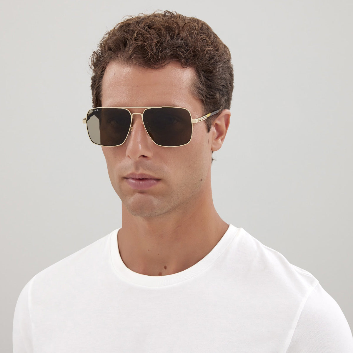 Gold/Havana (002) Sunglasses (GG1289S 002 62) by Gucci. Size: 62-14-145, Shape: Aviator, Material: Metal and Recycled Acetate.