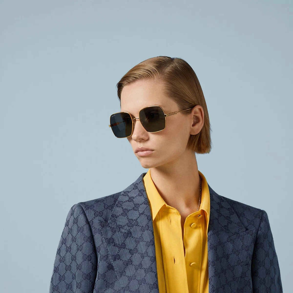 Gold (002) Sunglasses with Brown lenses (GG1434S 002 57) by Gucci™. Size: 57-19-145, Shape: Square, Material: Metal.