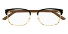 GG1448O Eyeglasses by Gucci™. The rectangle shape design feature a full rim metal frame. This model is available in three different color combinations and sizes. Gucci is a luxury Italian brand that started as a luggage manufacturer, but over time, it developed and grew up into a great fashion house that offers outstanding clothes, shoes, bags, textiles, cosmetics, fragrances, and accessories, including a stunning eyewear collection. Each pair of glasses evokes luxury and symbolizes uniqueness, combined with impeccable design and high-quality materials. Originality, stand-out look, and reliability are the main characteristics of eyewear made by a trustworthy and would-known brand that has got the reputation of the leader in a wonderful world of modern vogue and bold design.