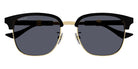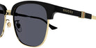 Gold/Black (001) Sunglasses with Gray lenses (GG1499SK 001 55) by Gucci™. Size: 55-19-150, Shape: Browline, Material: Acetate and Metal.