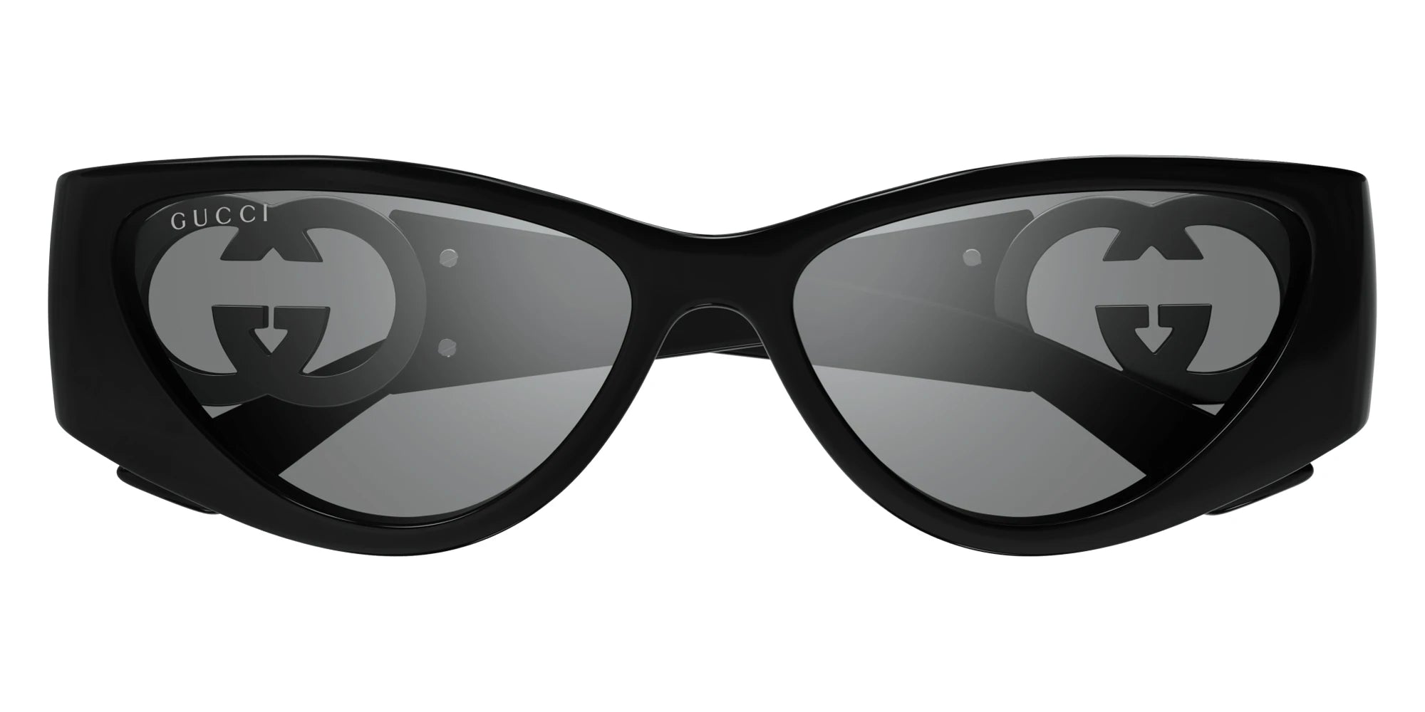 Black (004) Sunglasses with Gray Mirrored lenses (GG1824S 004 55) by Gucci™. Size: 55-14-135, Shape: Cat-Eye, Material: Injection.