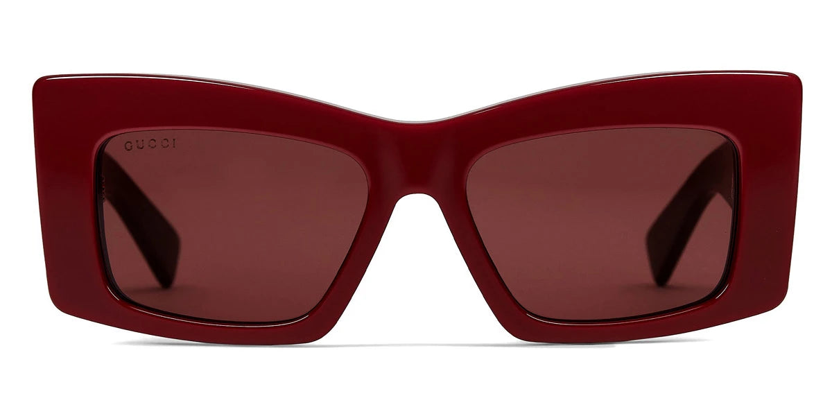 Burgundy (005) Sunglasses with Red lenses (GG1842S 005 53) by Gucci™. Size: 53-17-140, Shape: Cat-Eye, Material: Recycled Acetate.