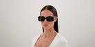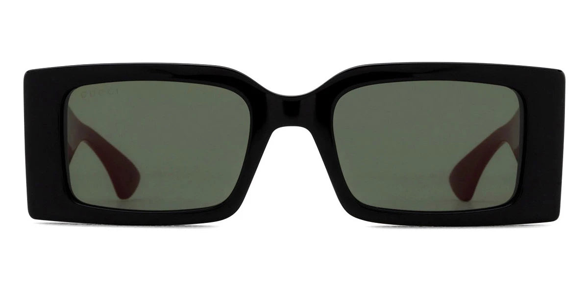 Black/Green (001) Sunglasses with Gray lenses (GG1860S 001 52) by Gucci™. Size: 52-20-135, Shape: Rectangle, Material: Recycled Acetate and Injection.