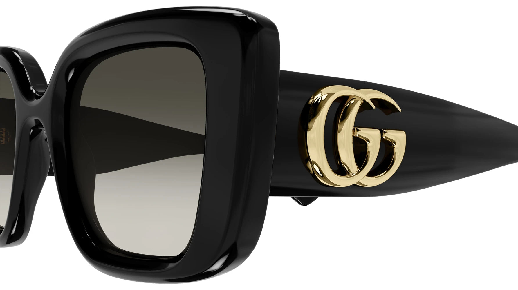 Black (002) Sunglasses with Gray Gradient lenses (GG1975S 002 50) by Gucci™. Size: 50-22-145, Shape: Cat-Eye, Material: Injection.