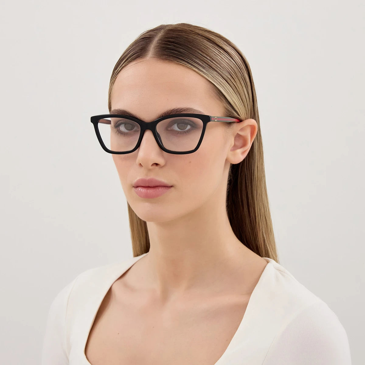 Black/Green (001) Eyeglasses (GG1989O 001 56) by Gucci™. Size: 56-16-145, Shape: Cat-Eye, Material: Recycled Acetate and Injection.