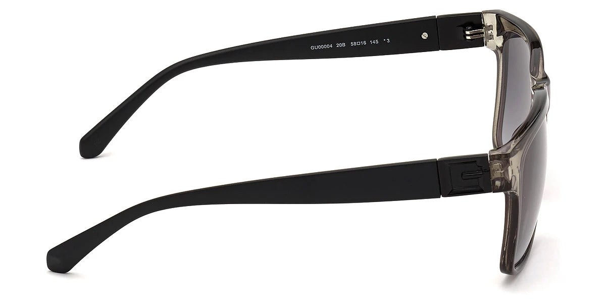 GU00004 Sunglasses by Guess™. Shape: Square, Material: Plastic, Frame Type: Full Rim. GU00004 are available in three different color combinations and sizes. The GUESS company was founded in 1981 by the Marciano brothers and over a short period it has evolved into a well-known brand that produces clothing, footwear, accessories and perfumes. Initially, the founders focused exclusively on the designs and tailoring of denim clothing, which brought considerable success. Perhaps the secret of popularity is that GUESS products are intended not only for the highest society - absolutely everyone can afford the things of this brand. Glasses created by the brand's designers are no less in demand among urban fashionistas around the world. Optical collections combine both classics of style and innovative technologies as well as modern quality materials. The variety of shapes, patterns and colors of GUESS eyewear undoubtedly adds the finishing touch to any look.