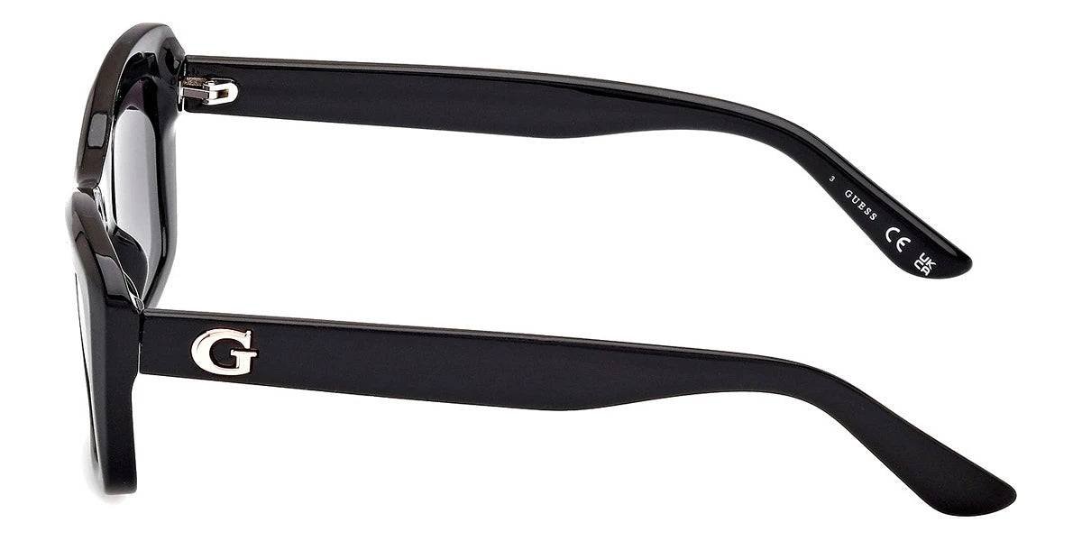 Shiny Black (01B) Sunglasses with Gradient Smoke lenses (GU00195 01B 52) by Guess™. Size: 52-17-140, Shape: Rectangle, Material: Injected.