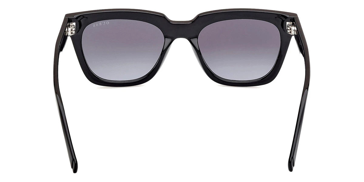 Shiny Black (01B) Sunglasses with Gradient Smoke lenses (GU00206 01B 53) by Guess™. Size: 53-19-145, Shape: Square, Material: Injected.