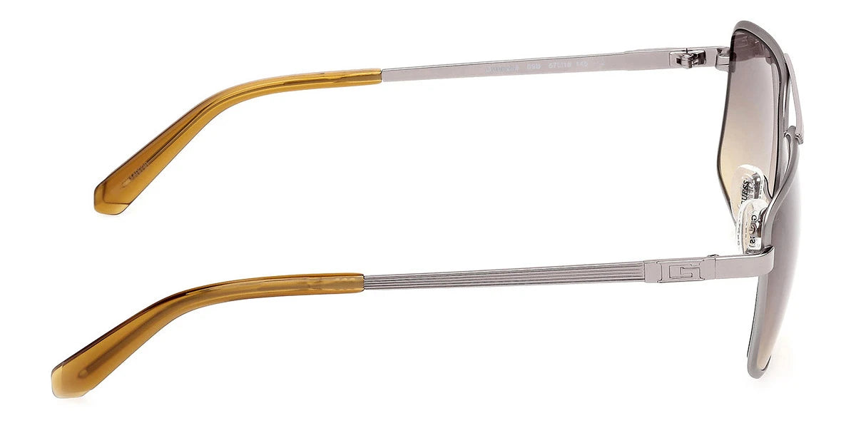GU00208 Sunglasses by Guess™. The aviator shape design feature a full rim metal frame. This model is available in four different color combinations and sizes. The GUESS company was founded in 1981 by the Marciano brothers and over a short period it has evolved into a well-known brand that produces clothing, footwear, accessories and perfumes. Initially, the founders focused exclusively on the designs and tailoring of denim clothing, which brought considerable success. Perhaps the secret of popularity is that GUESS products are intended not only for the highest society - absolutely everyone can afford the things of this brand. Glasses created by the brand's designers are no less in demand among urban fashionistas around the world. Optical collections combine both classics of style and innovative technologies as well as modern quality materials. The variety of shapes, patterns and colors of GUESS eyewear undoubtedly adds the finishing touch to any look.