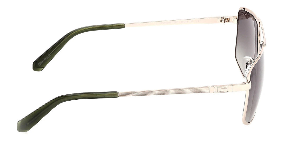 Shiny Pale Gold (32P) Sunglasses with Gradient Green lenses (GU00208 32P 57) by Guess™. Size: 57-18-145, Shape: Aviator, Material: Metal.
