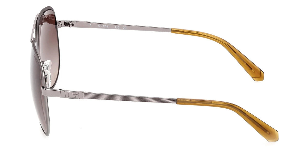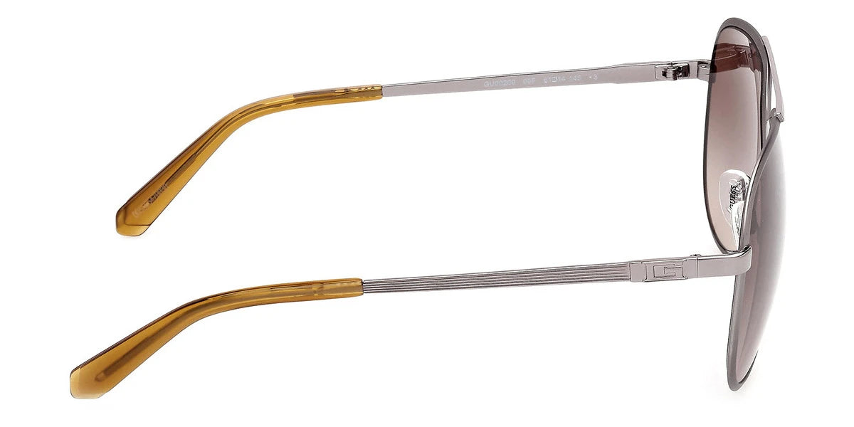 Shiny Satin Gunmetal/Shiny Gunmetal (09F) Sunglasses with Gradient Brown lenses (GU00209 09F 61) by Guess™. Size: 61-14-145, Shape: Aviator, Material: Metal.