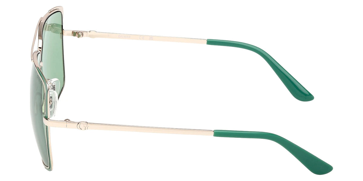 Matte Dark Green/Shiny Pale Gold (97N) Sunglasses with Green lenses (GU00220 97N 62) by Guess™. Size: 62-12-140, Shape: Aviator, Material: Metal.