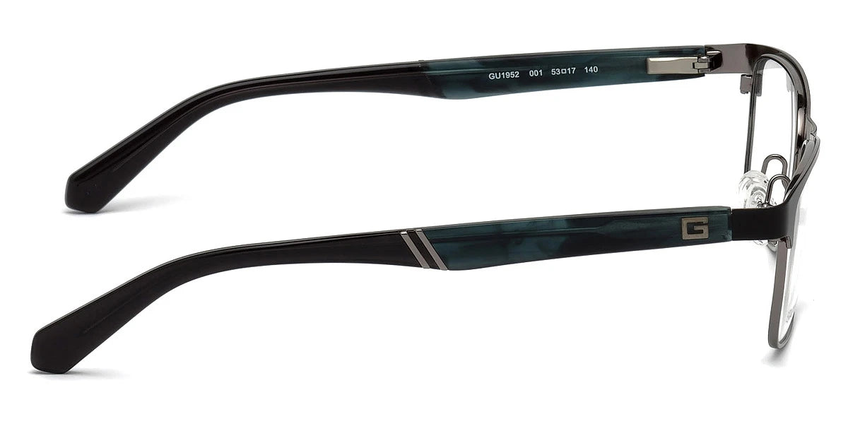 Shiny Black (001) Eyeglasses (GU1952 001 53) by Guess™. Size: 53-17-140, Shape: Rectangle, Material: Metal.