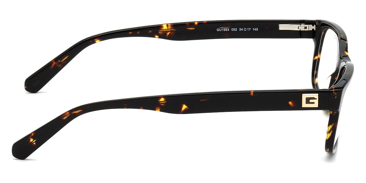 Dark Havana (052) Eyeglasses (GU1993 052 54) by Guess™. Size: 54-17-145, Shape: Rectangle, Material: Plastic.