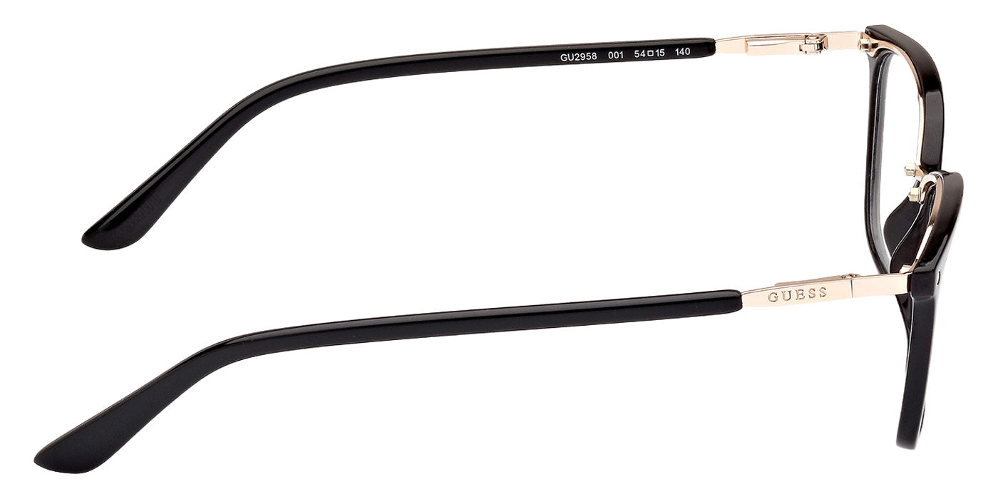 Shiny Black (001) Eyeglasses (GU2958 001 54) by Guess. Size: 54-15-140, Shape: Rectangle, Material: Injected.