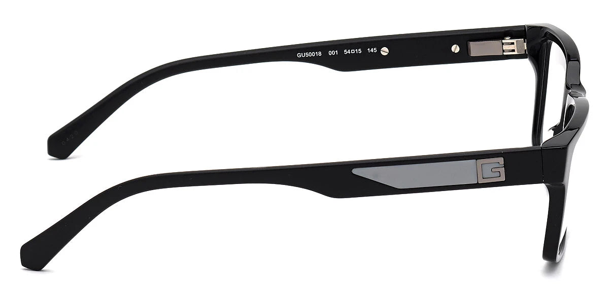 Shiny Black (001) Eyeglasses (GU50018 001 52) by Guess™. Size: 52-15-145, Shape: Rectangle, Material: Plastic.