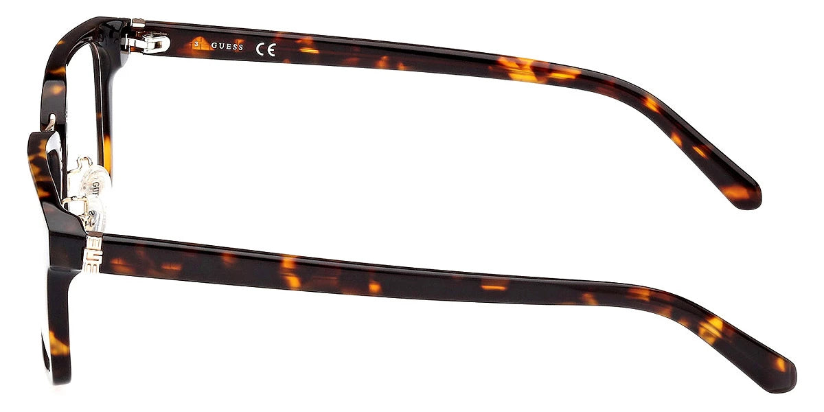 Dark Havana (052) Eyeglasses (GU50088-D 052 54) by Guess™. Size: 54-19-145, Shape: Rectangle, Material: Plastic.