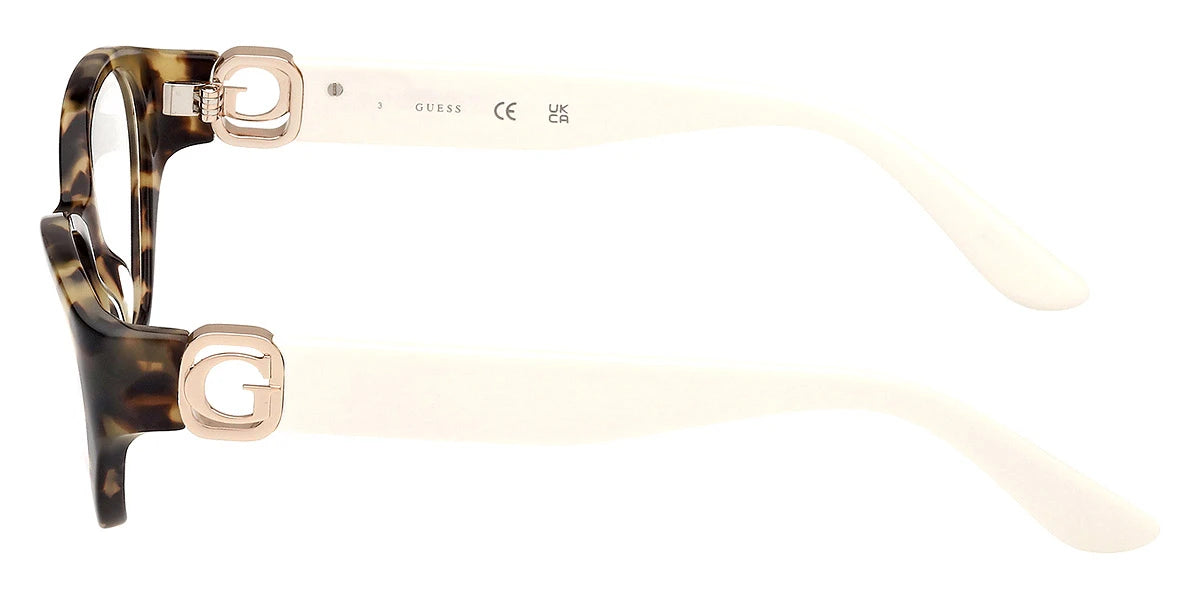GU50119 Eyeglasses by Guess™. The cat-eye shape design feature a full rim plastic frame. This model is available in three different color combinations and sizes. The GUESS company was founded in 1981 by the Marciano brothers and over a short period it has evolved into a well-known brand that produces clothing, footwear, accessories and perfumes. Initially, the founders focused exclusively on the designs and tailoring of denim clothing, which brought considerable success. Perhaps the secret of popularity is that GUESS products are intended not only for the highest society - absolutely everyone can afford the things of this brand. Glasses created by the brand's designers are no less in demand among urban fashionistas around the world. Optical collections combine both classics of style and innovative technologies as well as modern quality materials. The variety of shapes, patterns and colors of GUESS eyewear undoubtedly adds the finishing touch to any look.