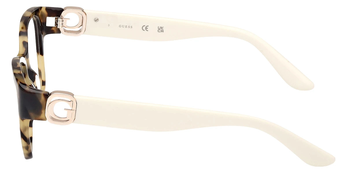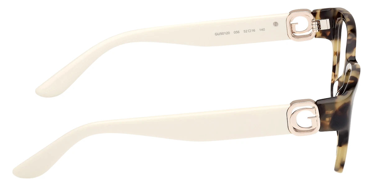 Yellow/Havana (056) Eyeglasses (GU50120 056 50) by Guess™. Size: 50-16-140, Shape: Square, Material: Plastic.