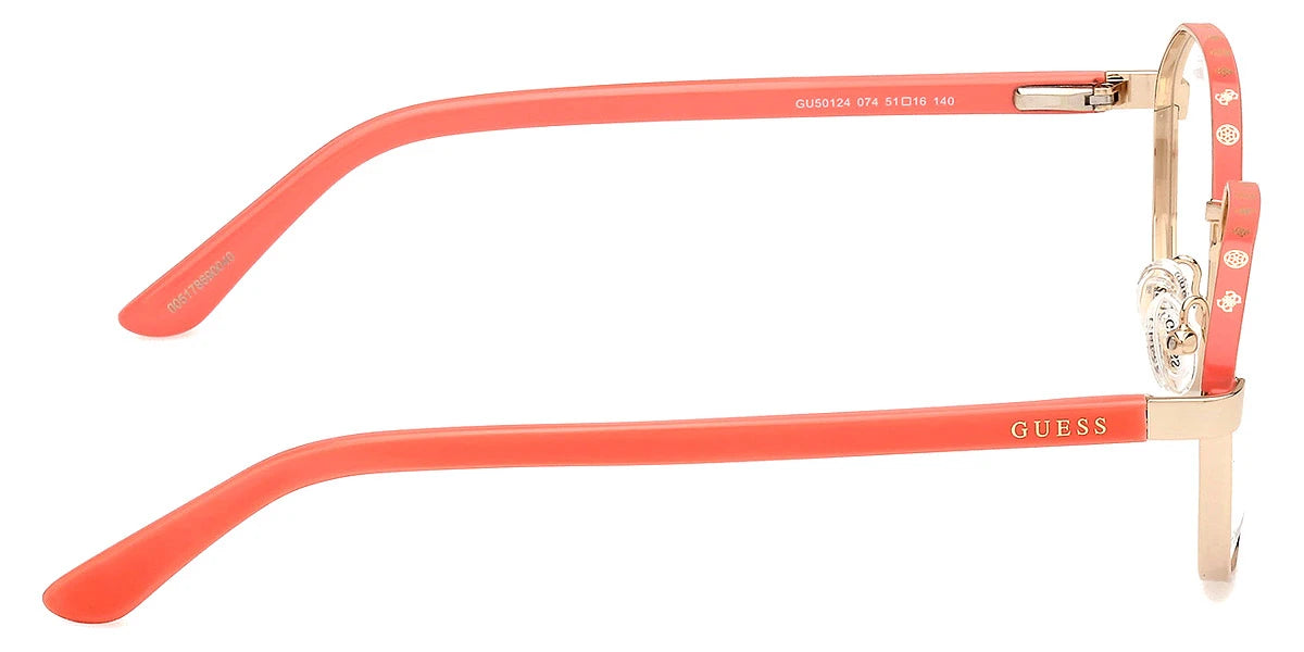 Shiny Deep Gold (005) Eyeglasses (GU50124 005 51) by Guess™. Size: 51-16-140, Shape: Round, Material: Metal.