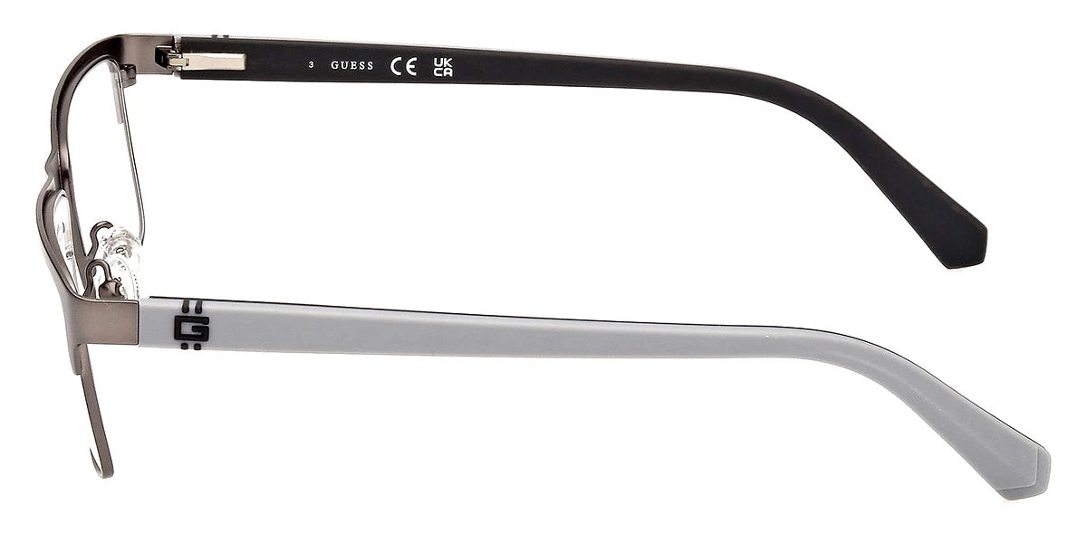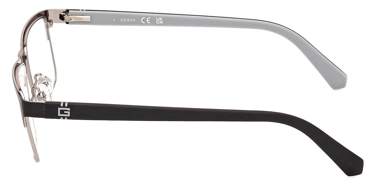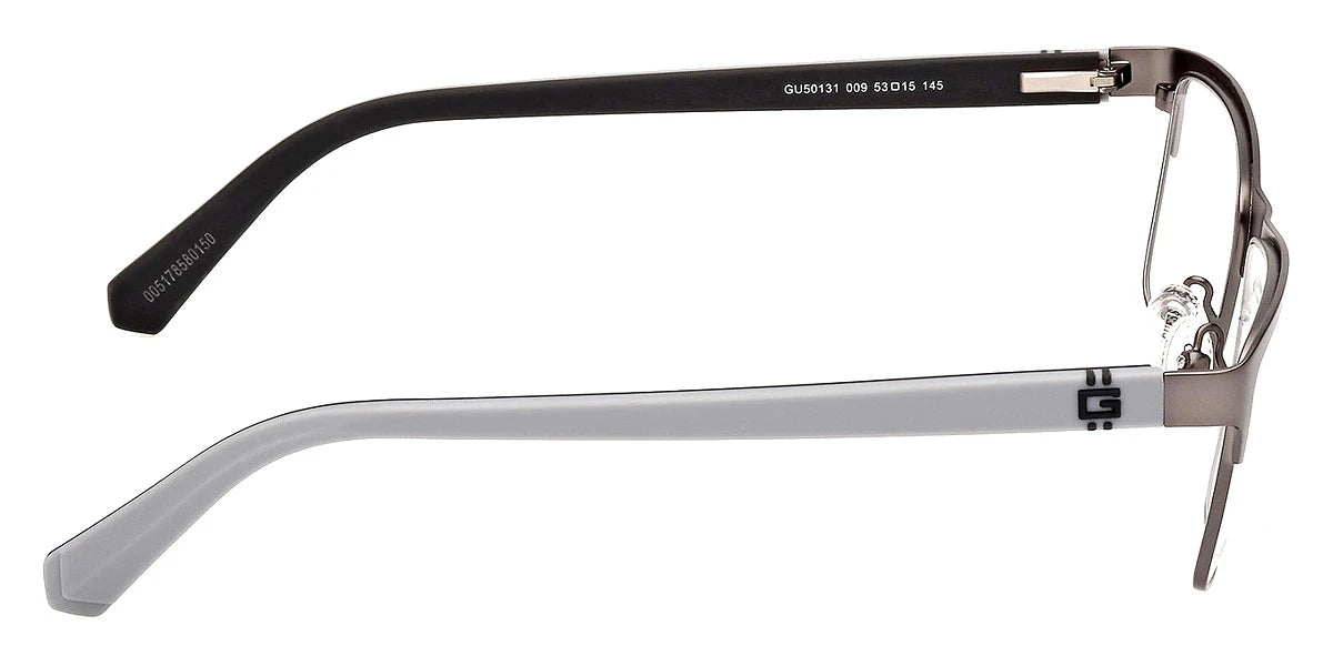 Matte Gunmetal (009) Eyeglasses (GU50131 009 55) by Guess™. Size: 55-15-145, Shape: Rectangle, Material: Metal.