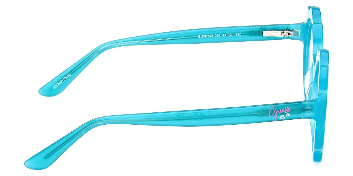 Shiny Turquoise (087) Eyeglasses (GU50142 087 44) by Guess™. Size: 44-21-130, Shape: Round, Material: Plastic.