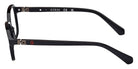 The third number — the temple length — is the length of the "stems" of the frame, measured from the frame hinge to the back tip of the temple. Temple lengths generally range from 120 mm to 150 mm.