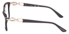 The third number — the temple length — is the length of the "stems" of the frame, measured from the frame hinge to the back tip of the temple. Temple lengths generally range from 120 mm to 150 mm.